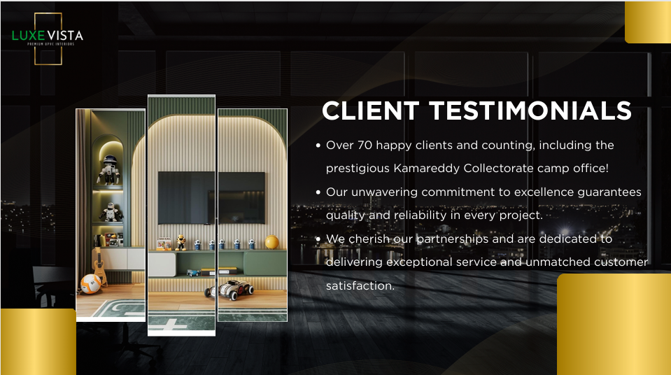 At LuxeVista Interiors, we believe luxury should not only look beautiful but also last a lifetime.
